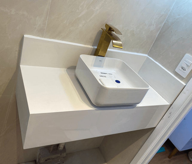 A pia esculpida em porcelanato é sinônimo de modernidade. Além do design elegante, oferece alta resistência, fácil limpeza e durabilidade, sendo perfeita para banheiros que buscam estilo e praticidade.