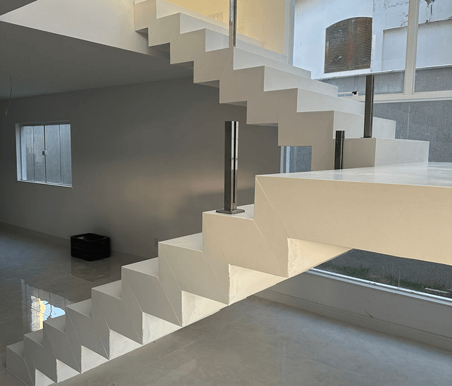 O porcelanato indicado para escadas é o acetinado ou antiderrapante, que garante segurança no uso diário, além de alta durabilidade e fácil manutenção